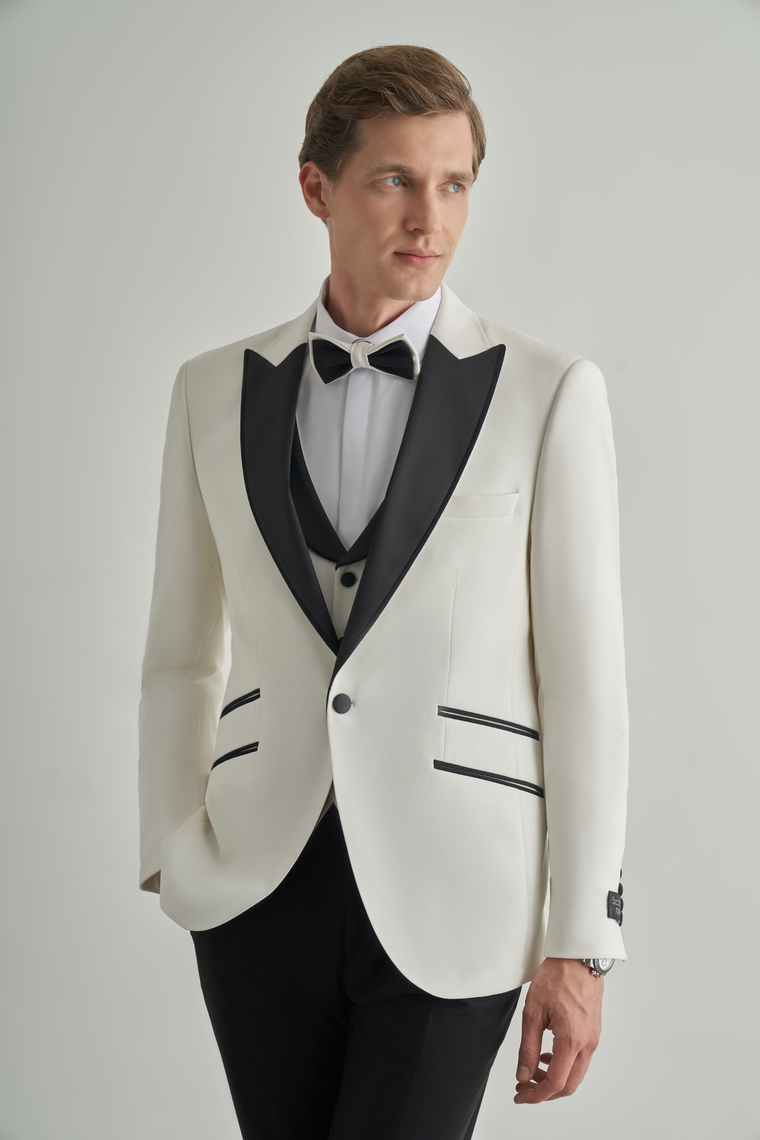 Cut in a slim fit silhouette, this suit offers a sharp, tailored look while ensuring all-day comfort. The jacket and vest are gently shaped through the chest and waist for a refined fit, while the trousers feature a subtle taper for a clean, modern finish.