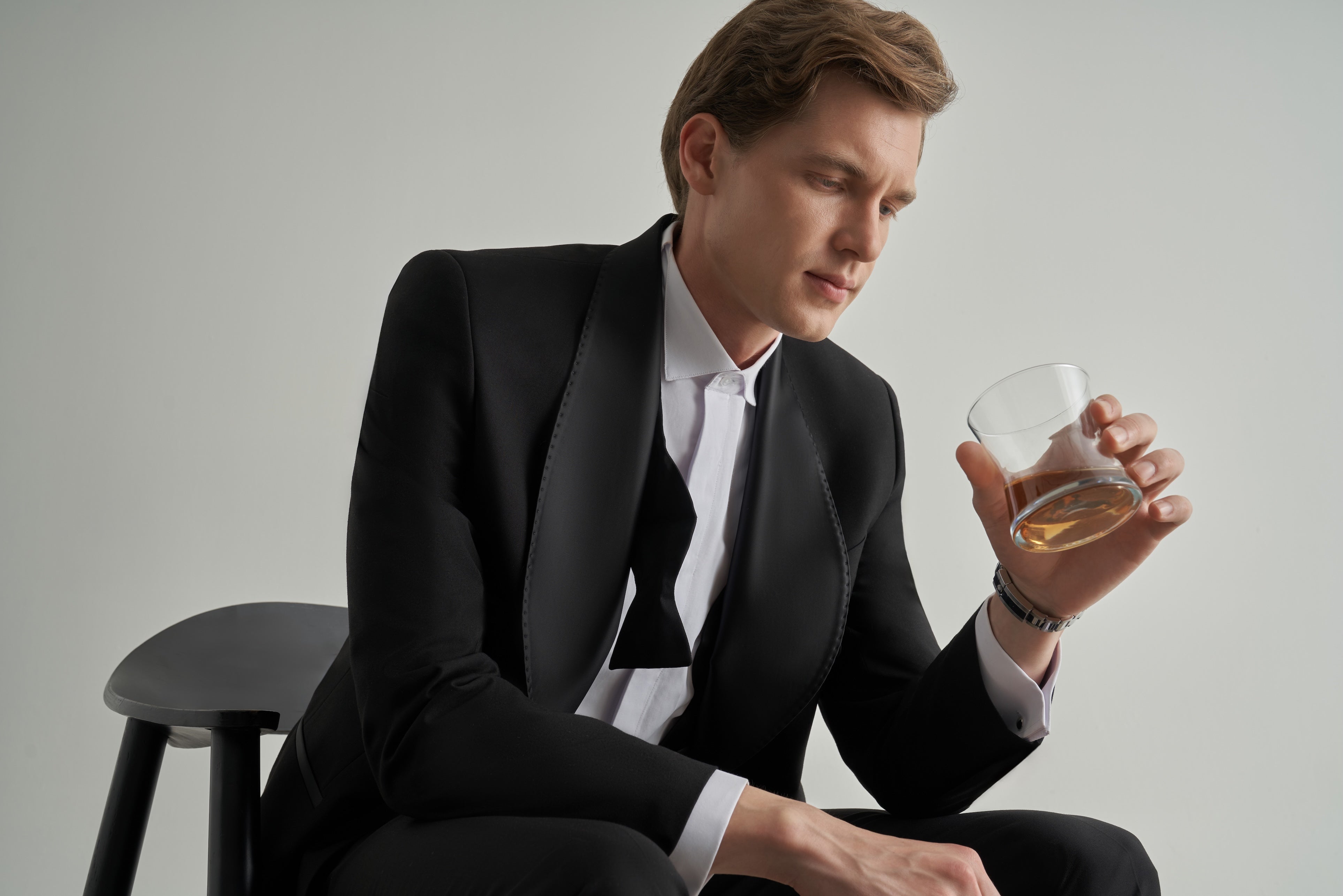 This black double-breasted tuxedo is a modern classic and one of the standout pieces in our collection.