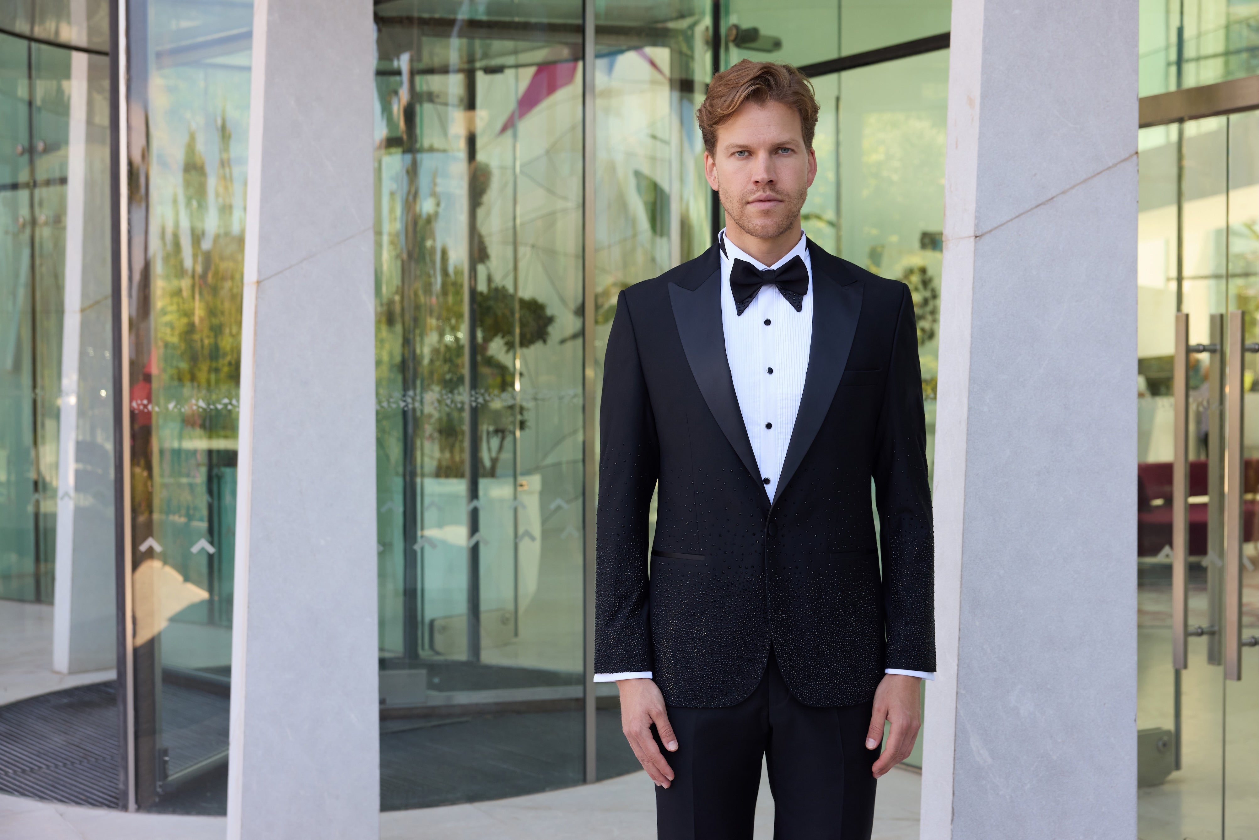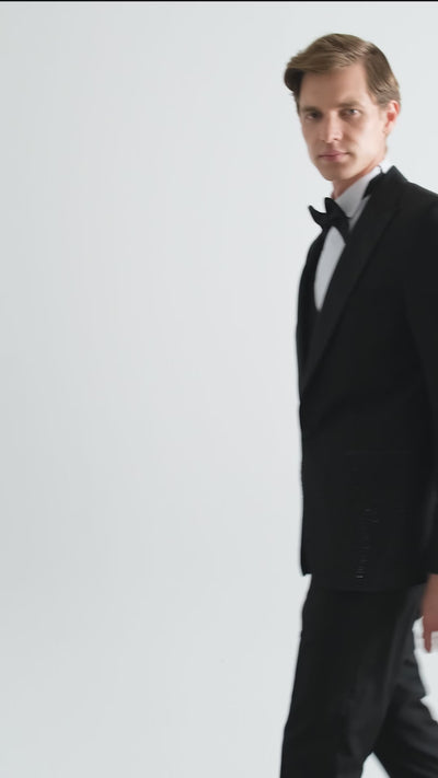 Step into timeless elegance with this striking black tuxedo set, designed for the most formal and memorable occasions.